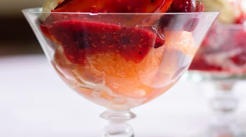 The raspberry and redcurrant sauce is thickened with blackcurrant jam, but you could use apricot jam or redcurrant jelly. The sauce thickens slightly on cooling. Sweeten it once cooled with a little icing sugar if you wish.