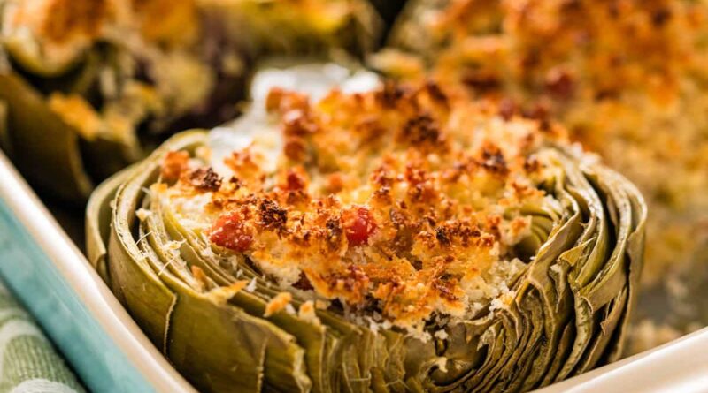 Read moreElevate your life with these lemony, cheesy, golden stuffed artichokes. If you’re unsure about artichoke in general, fear not! There’s nothing more satisfying than dunking an artichoke leaf in lemony butter, but imagine having that leaf piled high with cheesy, crispy breadcrumbs! Whether it is served up as a shareable starter or an impressive vegetable, this striking dish is sure to steal the show. Just don’t forget the melted butter!